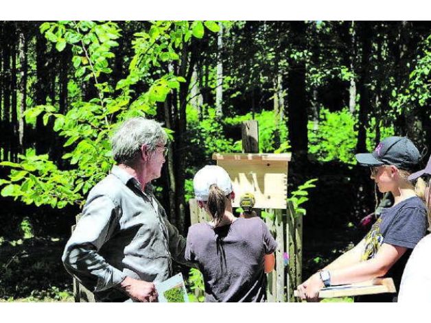 Anschliessend teilten sich die Kinder in Gruppen auf, um mit jeweils einem der freiwilligen Waldarbeiter die Holztafeln und die Informationsschilder anzubringen. Die dekorativen Holztafeln, auf denen die Schilder montiert wurden, fertigte Kurt Baumann, freiwilliger Waldarbeiter und ehemaliger Werklehrer. «Er macht immer alles sehr akkurat», verriet Förster Hochuli wertschätzend über den Waldarbeiter.